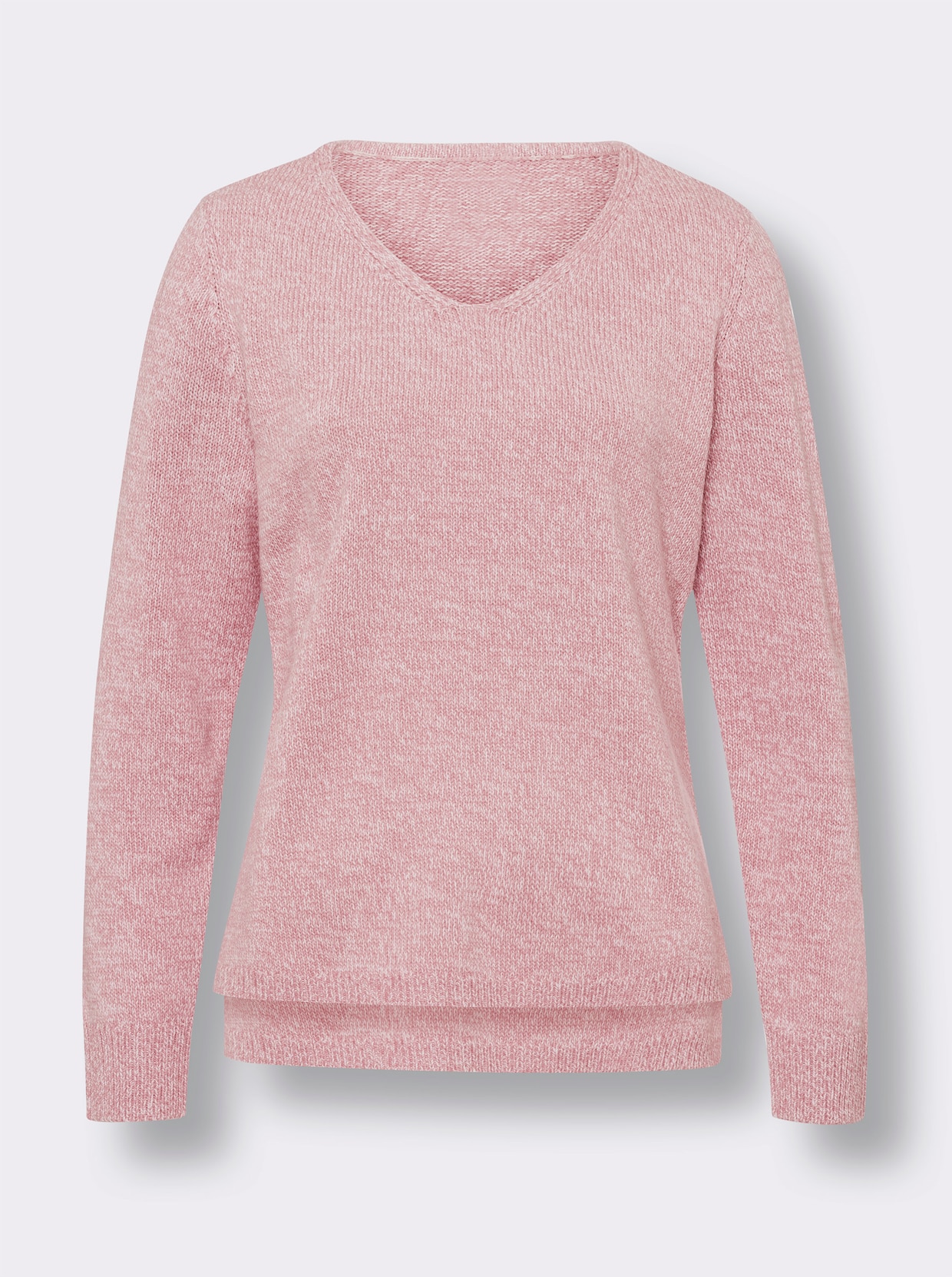 Langarm-Pullover mit Seitenschlitzen - altrosa-meliert